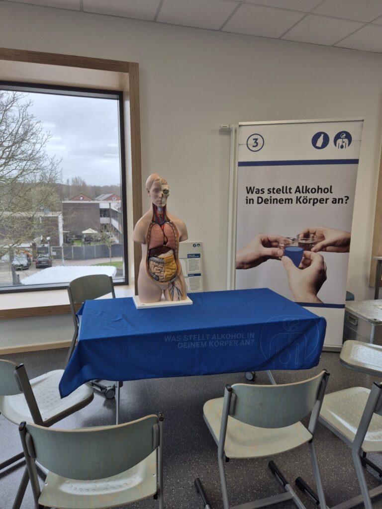 Neben der eindrucksvollen ,,Rauschbrillen- Erfahrung‘‘ brachten noch weitere Stationen den Schülerinnen und Schülern die Risiken und Gefahren von Alkoholmissbrauch nahe. So erfuhren die Schülerinnen und Schüler nicht nur, welche Auswirkungen Alkohol auf die verschiedenen Organe haben kann, sondern auch, welche rechtlichen Folgen zu berücksichtigen sind. Handlungsorientiert, lebensnah, altersgerecht und eindrucksvoll wurde den Schülerinnen und Schülern an insgesamt fünf Stationen die Möglichkeit gegeben, sich mit der Thematik auseinanderzusetzen, eigene Verhaltensweisen zu reflektieren und Strategien zu erlernen, die Schülerinnen und Schüler in ihrer Entwicklung stärken.